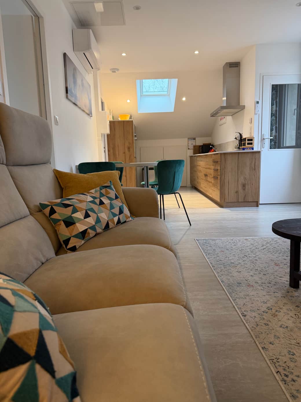 La Belle Cachette is easy to find and only 4 km from exit 17 of the A26 motorway. Take the D3 towards Epernay and turn right at the first junction in the village of Matougues. Follow the road and you will arrive at Les Bels Apparts; La Belle Cachette is on the first floor. There is free parking for one car per apartment in front of the building (please do not block the charging point if you do not have an electric car), and there is also free parking a few hundred meters away on Rue du Moulin.